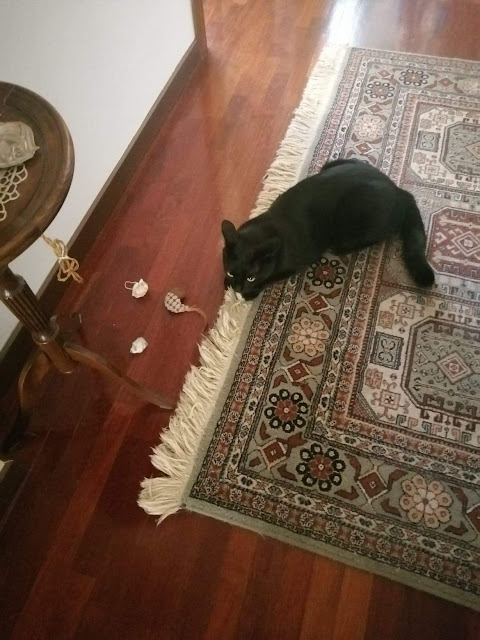 Mal élevé plumé qui me nargue !!!!!! Il m'a donné faim, je n'ai plus qu'à aller voir en cuisine ce qui se prépare..