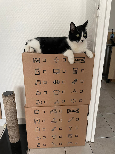 Quoi est-ce ? Non, non, noooon ! Pas chez Tatikicri pitié ! Elle va vouloir que j'aille jouer avec Bichon la permanente vivante qui lui sert de chien émissaire ! C'est hors de question ! Il faudra me décrocher de mon arbre, et c'est pas gagné !